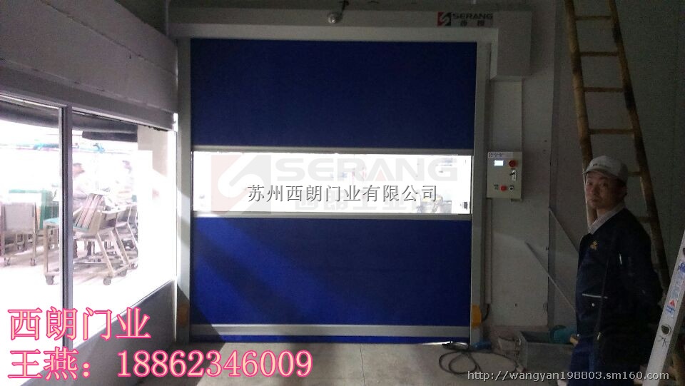门布材质:一般以PVC或PVDF膜材作为帘布,特别是PVDF膜材抗老化性能更好,不易退色而且有自洁功能,做快速卷门非常适合。产地以德国产或法国产的为首选。厚度0.8mm-2.0mm。颜色有橙色,黄色,蓝色,银色,透明网格,黑色等,以橙色为首选,原因是橙色非常醒目,有警告作用,还有一定的防虫功能。