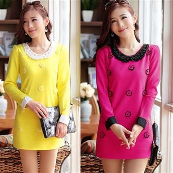 1 领口:圆领设计,串珠点缀,做工精细,时尚优雅