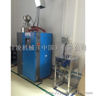 吸料部分:吸料是从储料桶或其它储料容器中吸入干燥料桶内,当真空料斗的磁簧开关侦测到无料时,吸料马达运转,使真空料斗内产生真空,储料桶中的原料由于空气的压力差被吸入真空料斗内,当吸料时间完成后,吸料马达停止运转,原料会因自重落入干燥料桶内。经干燥后的原料从干燥料桶抽到安装在塑胶成型机的电眼料斗内或其它料斗内。