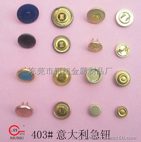 东莞钮纽金属制品厂(前身为东莞展志五金制品厂),成立于2003年。坐落于在改革开放前沿的新兴工业城市——中国东莞。是集生产、销售金属钮扣,手袋、箱包配件为一体的中型企业。