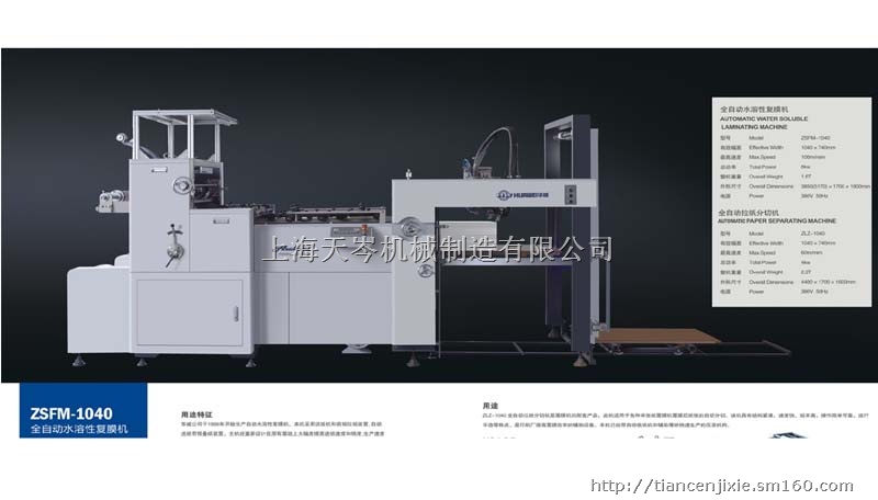 ZSFM-1040全自动水溶性复膜机用途特点