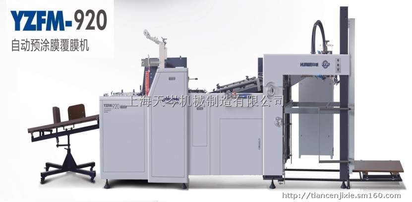 本机采用变频调速,搭口采用伺机电机,PLC集中控制,人机界面显示。由自动输纸机、前规、拉规。轮刷除粉。油热滚筒除粉、胶膜供给、薄膜分切和打孔机构、热压复合及其复合离合控制系统、消卷机构、分切机构、收纸台等部套组成。实现不同幅宽、不同厚薄的印品与无胶膜、预涂膜的复合,复合后的印品通过消卷机构、分切机构,形成单张的复合印品,经振动收纸台收集成整齐小垛,经手工拿出。