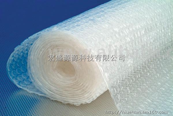 -气泡膜优点:防震、防水、防潮、防尘、无毒、环保、防油、防潮,还能抵御许多化合物的侵蚀,对机械油、润滑脂等具有耐久性,质量轻,缓冲性能好,各项指标均非常适合于作为包装材料使用。