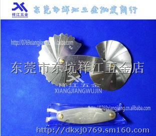 不锈钢半径规介绍:R规是利用光隙法测量圆弧半径的工具。测量时必须使R规的测量面与工件的圆弧完全的紧密的接触,当测量面与工件的圆弧中间没有间隙时,工件的圆弧度数则为此时候应的R规上所表示的数字。由于是目测,故准确度不是很高,只能作定性测量。