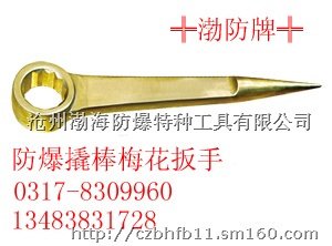 防爆撬棒梅花扳手是一种适合在易燃易爆作业环境下,用来拆装螺栓螺母的常用防爆工具,另一端的尖状撬棒尾部可以插入狭窄空间,适合撬动管道法兰连接面等设备,使其分离。
