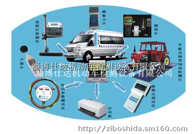 平板式轴重制动试验台:烟度计:踏板力计:前照灯检测仪:转向参数测试仪:便携式制动仪:声级计:电脑:打印机: