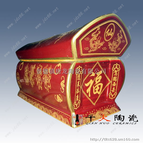 我公司生产陶瓷棺材,陶瓷骨灰盒,陶瓷骨灰罐等殡葬用品,陶瓷骨灰罐适用于土葬,迁坟,他的特点小,完全可以存放于家中供拜,陶瓷骨灰罐顾名思义就是用来装骨灰的容器。火葬作为一种新的殡葬方式,遗体被火化之后,骨灰需要容器来集装,所以,陶瓷骨灰罐便得到应用。陶瓷骨灰罐的品种有很多,其中陶瓷制作的陶瓷骨灰罐是一个比较新颖的产品,新颖的同时,陶瓷骨灰罐还具有非常优良的特性。并且正是由于这些优良的特性,使得陶瓷骨灰罐具有良好的发展前景,我们抱有相当的期待,陶瓷骨灰罐是今后殡葬用品的发展方向之一。