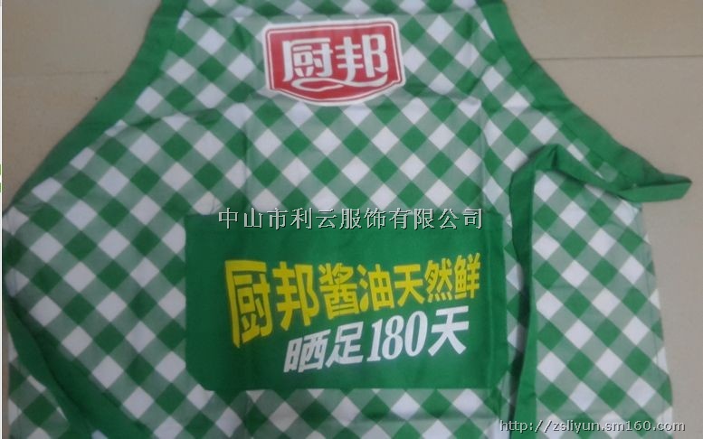 中山利云广告围裙性能及优点:1、尺寸,印刷,颜色可依客户需求定制—满足个性需求;2、印刷精美,可水印,丝印,热转印(烫画),彩印等。3、更低!——成本低,价格更具竞争力。4、更快!——多条流水线,量化生产,发货快。5、更好!——熟练的技工,专业制作,高品质。6、适合参展,赠品,礼品——广告效用好!