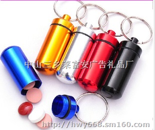 铝合金小药盒 钥匙扣小药瓶 广告促销礼品 工厂批发产品名称:铝合金小药盒 钥匙扣小药瓶编号:LFA-6001规格:7*1.8cm材质:铝合金产品重:12.5g产品特点:可以当钥匙扣用,小药盒具有防水性能,里面很干净,可以随时装一些急救药丸或其他小东东。可以加印logo