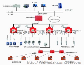 综合数据监测系统主要由地面中心站监控主机和软件、通讯适配器、通讯电缆或光缆、矿用隔爆兼本质安全型电源箱、井下监控基站、无线数据收发机、矿用本安型数字压力计、围岩移动传感器、锚杆锚索应力数字压力计、钻孔数字压力计及防雷栅等单元构成。
