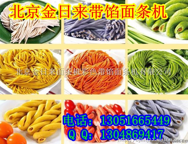 6、可生产出荤素各民的带馅彩色面条,其直径为2.8-3.2MM,馅径为1-1.5MM,质量规格全符合面条生产的相关国家标准。