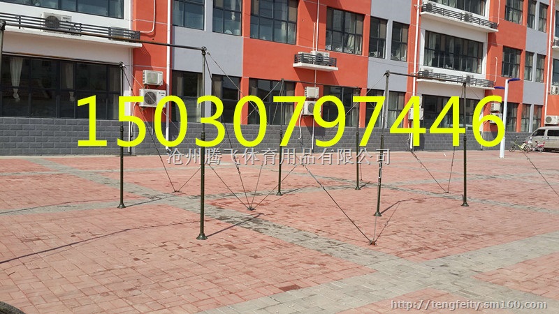 用四根绳索(直径至多为1厘米)将单杠拉成直立,四根绳索和地面的四个地钩相连。