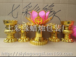 立体莲花蜡烛,中部由荷叶莲花,下部是带字‘烛台’上部荧光粉色莲花。实体用蜡少,由配件加蜡制造成本不高于两块。