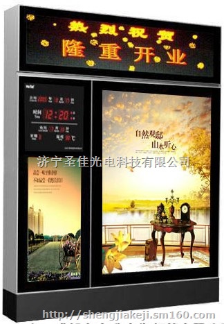 济宁led超薄广告灯箱生产厂家首选。公司只要经营,LED室内全彩显示屏、LED室外全彩显示屏、LED双色显示屏、LED室外双色、LED室内双色、圣佳LED电子灯箱济宁圣佳广告灯箱,其集研发,生产销售为一体,济宁圣佳经营各种led智能广告展示设备,包括广告灯箱,超薄灯箱,公交站灯箱等等多年广告灯箱制作经验.各种型号适应各种场所。