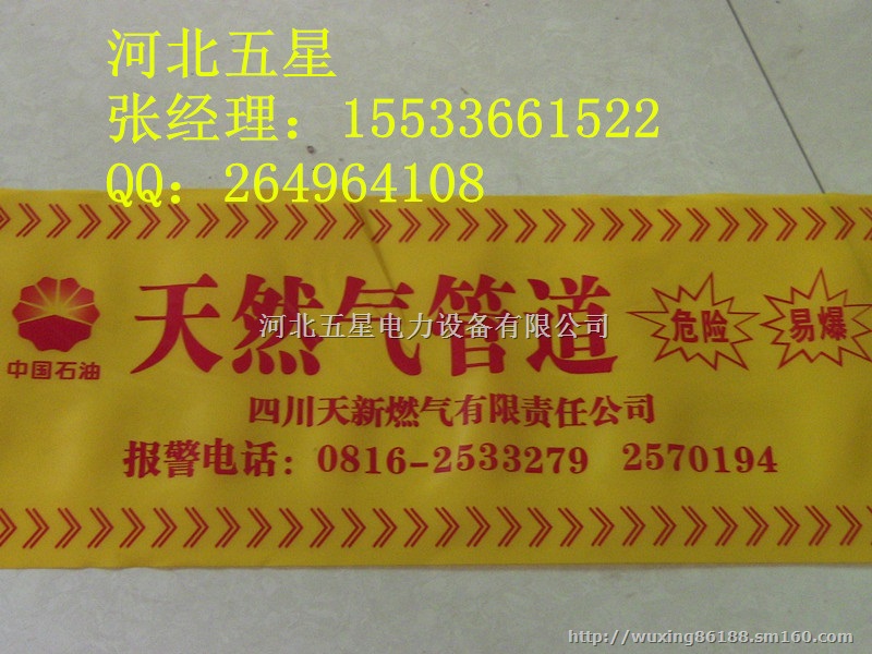 河北五星电力设备有限公司拥有高科技生产技术及大型生产流水线设备,可以加工10cm—150cm各种规格警示带,标志带,可探测警示带,示踪带,品种齐全,加工销售。以PE聚乙烯、聚丙烯、防腐膜为主要材料,质量保证,价格优惠,还可根据客户需求印刷警示标语。