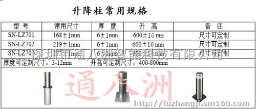 深圳通八洲液压升降柱属于控制车辆通行的设备,可以与道闸控制系统等配套使用,也可以单独使用。升降柱又分为自动升降柱、气动是由底部基座、升降阻断路障柱、动力传动装置、控制等部分组成,根据不同客户的不同的需求,具有多种配置方式可供用户选择,可以满足各种客户的功能要求。