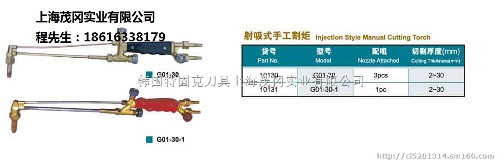 | 上海焊割工具厂工字牌G01-100/G01-300射吸式加长手工割炬 |