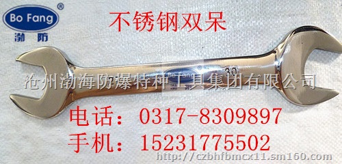 不锈钢双头呆扳手的规格:8*10、10*12、12*14、14*17、16*18、17*19、19*22、22*24、24*27、27*30、30*32、32*34、34*36、32*36 (单位:mm)