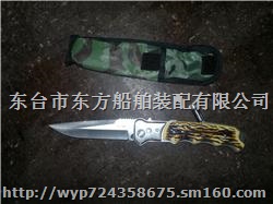 用于水手装备,应急时使用.刀头为不锈钢,刀背上有交叉锯齿,可当锯子使用