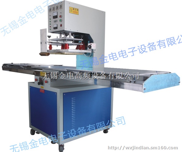工业原理:利用高压整流刺激高频电子管震荡瞬间产生电磁波电场, 被加工PVC\EVA\TPU塑胶材料在电磁波电场内瞬间发生分子变化, 加上一定的压力就可以达到熔接目的。