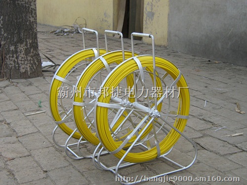 电缆穿孔器主要由玻璃纤维与高强度树脂经过高温拉挤成玻璃纤维线。这种线具有很高的抗拉强度并有良好的柔韧性,玻璃纤维线外表由高密度聚乙烯工程塑料制作层的护套层,使穿孔器外表光滑、耐磨,耐老化,耐酸碱、具有良好的的绝缘性能使他用在有电缆的管道里的时候很安全。