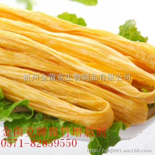 本品主要由复合钙制剂,复合乳化剂、复合酶制剂、海生提取物、抗氧化剂等组成,呈白色粉末状,易溶于水。具有效果好、成本低、使用简便等优点,目前已被福建、河南、山东、河北、山西、湖北,江西、广西、广东、浙江、东北等数百家腐竹工厂所选用。
