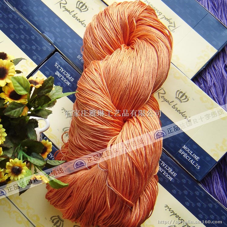 纯棉十字绣线采用100%埃及长绒棉,其棉绒长度可达42mm是普通棉花纤维长度的1.5倍,棉绒光洁、柔韧性好、细度一致、染色效果好。因此使用吉扎45为原材料纺织而成的R纯棉十字绣线具有不褪色、不易起毛、不易打结等优点,其质量与dmc绣线并驾齐驱,价格合理,特别适合高端十字绣产品。