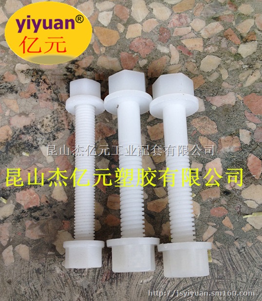 这是塑料螺丝中另外比较常见的一种,其原材料是PP(聚丙烯)。颜色为白色。优点是原材料相对比较便宜,且耐酸碱程度较高。一般规格比较大的螺丝一般是M10以上都是用pp制成。缺点是韧性和锁紧性能相对没有尼龙好。昆山亿元塑胶可定做(pp.upvc.cpvc.ppH.尼龙螺丝).
