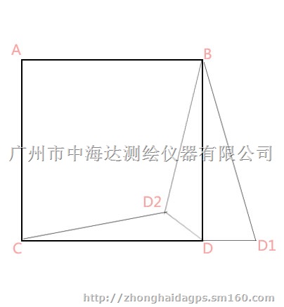 如果其中D点偏差,向外偏差,测到的面积是AB(D1)C的面积,如果向内偏差,测到的面积是AB(D2)C的面积,这样就非常好理解了。