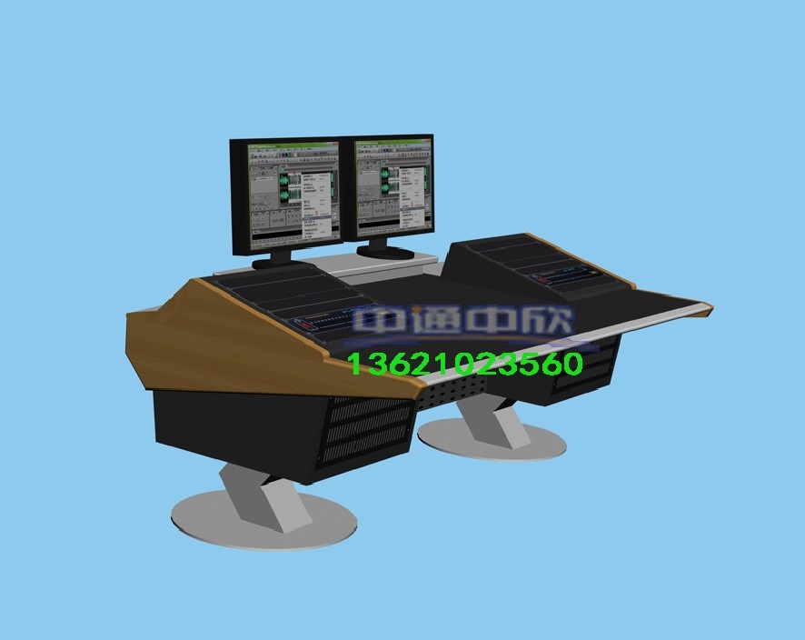 上机架设有国际标准19英寸机架,满足周边设备的安装(如话放、分配器等),下机架设有通风散热板,更好的保护设备的长时间工作需求,机架与机架内设走线孔与过线槽,方便布线安装,控制桌整体的设计符合亚洲人体生理学和声学要求。