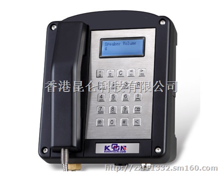 | 尺寸 | 227 x 293 x 135mm | | 重量 | 5.8kg | | LCD显示屏 | 2行字母数字显示屏; 高达4级背光灯可选 | | 键盘 | 不锈钢金属键盘,防潮防冻,防水等级达IP66 21位按键并带可操作ACE 字母 | | 听筒 | 动圈式受话器带助听功能 驻极体式送话器,极好的消噪功能 金属软管线,伸缩性强,拉力经测试170KGS以上 | | 防水等级 | IP66 | | 抗击能力: | IK09 | | 呼叫闪光传输距离: | 最大:120ms | | 拨号程序: | DTMF | | 外加功能: | 可外置扬声器 可外置耳机 听筒 震铃器 | | 温度 | -25℃ to 60℃ | | 储存温度 | -30℃ to +70℃ |