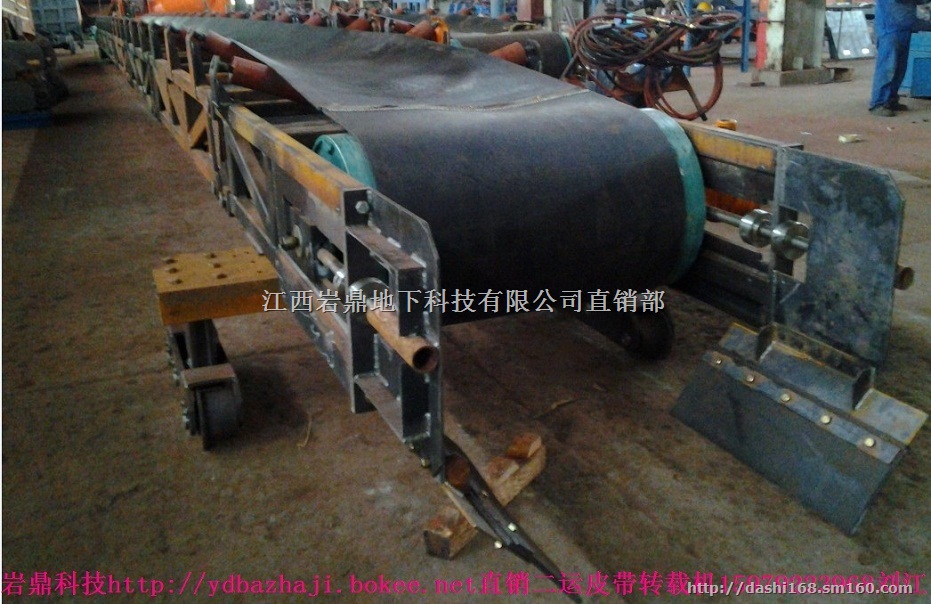 伸缩带式输送机中继转载机该机主要用于悬挂或牵挂在EP-50掘进机、EB-120掘进机、EBZ-160掘进机、EBZ-200掘进机、EBZ260掘进机、EBZ-355型掘进机、EBH300岩石掘进机和ZWY-80/45L型扒渣机、ZWY-120/55L型扒渣机、ZWY-150型扒渣机、ZWY-100/45L型三节臂凿煤机、ZWY-120/55L型三节臂凿煤机以及SJ-44、SJ-80型可伸缩皮带机之间的中间的中介转装设备。通过伸缩带式输送机中继转载机与可伸缩皮带机搭接长度的变化,保证转载机及运输的连续性:减少可伸缩皮带机拉伸皮带的次数,实现缩短辅助工时,加快掘进机或扒渣机采掘装速度的目的。