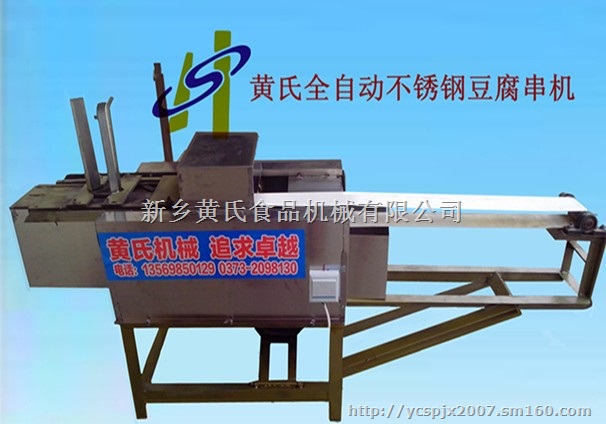 众所周知:豆腐串属营养味美的佐餐佳肴,人人喜食。既可与烧饼配食,亦可做风味卤菜、串串香、奇味涮烫等美味小吃,市场销售非常火爆。不过,市场现有的豆腐串产品均是由传统的人工方式即手工切片,一刀刀切花再一个个串起来的。人均日产量仅有1000多串,质量差,效率低,费工,费时,利润小。 我厂采用全不锈钢材料研制生产的豆腐串加工设备,一改传统手工生产模式,大大提高了生产效率,特别适合规模生产,批量派送,是您小本投资创富的理想选择。