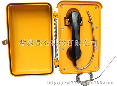 该话机适用于地铁、高速公路、电厂、油站、矿井、码头、钢铁公司、大型项目等对防潮、防火、抗噪、防尘、防冻、防破坏性等有特殊要求的环境使用。整机按零下35度到零上75度环境下稳定性要求设计,其技术指标处于国际领先水平。 一、 产品特性 1、外壳:铝合金铸造,外壳厚度5 MM,坚固耐用、密封性好;表面喷涂进口反光户外漆,颜色醒目, 5-10年不褪色。坑腐蚀性极强。 2、 门盖:获得设计专利。受轻微外力,门盖能自动弹回,不锈钢锁扣自动将门盖锁闭,防止门盖松动。门盖打开方向,可根据行车方向确定。 3、挂钩:不锈钢材质,利用磁感应挂断,采用美国军用最好的磁环管,可靠性强,不需要叉簧,没有接触缝隙。 4、手柄:特种ABS工程塑料,一体式结构,密封性好,经受敲击不破裂、扭拉不变形,在零下35度不爆裂。带不锈钢的可收缩的软管。抗拉力200KG 或者以上,可根据客户要求修改。 5、线材:采用铁氟龙线,耐酸碱、耐高低温、抗老化,不起火。 6、防水胶:采用进口防水胶,高粘度、耐高温、高压,防水寿命10年以上。 7、手柄送受话器、键盘、蜂鸣器、电路板、外壳所有配件采用多层防水、防尘结构。具有三级 防水、防尘功能,整机等级达到国家标准GB4028-93IP66 / IP67 8、话机稳定性好,抗干扰能力强,符合国家标准GB/T 15279-94
