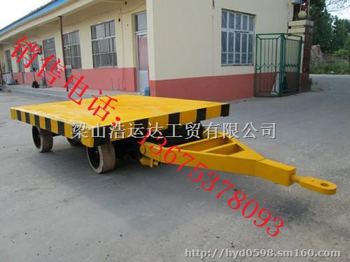 全挂车的荷载由自身全部承担,与机车仅用挂钩连接。机车不需要承担挂车荷载,只是提供动力帮助挂车克服路面摩擦阻力。在长途运输中很常见货车后面挂一个车厢(也可以是多个),就是全挂车。全挂车一般由车架、车身、牵引装置、转向装置、悬架、行走系统、制动系统、信号系统等组成。 直梁式车架纵梁的上翼面都是平直的。其优点在于挂车货台底板平整,制造工艺简单,离地间隙一般较高,纵向通过性好。重型平板式全挂车为了满足其结构和使用要求。车架主要由主梁、横梁、支承梁和边梁组成。整车的载荷通过横梁间的支承梁、悬架、车轮轴和车轮传到地面。车架主梁、支承梁和边梁为箱形截面的焊接件,具有较大的抗扭刚度。连接主梁的横梁向两侧伸出,为变截面的工字形焊接结构,具有较高的横向抗弯强度。车架主梁的高度尺寸较大,且是向下延伸,使车架在不增加货台高度的情况下,提高了车架的纵向抗弯强度。各支承梁下面设有安装平衡悬架的转盘机构,以实现全轮转向。重型全挂车装运的货物质量大,外形尺寸也大,一般说来,应增加车架的强度,尽量降低车架的高度,以便货物的装卸与运输。全挂车车架按其纵梁的结构型式有直通式车架、阶梯式车架和凹梁式车架。