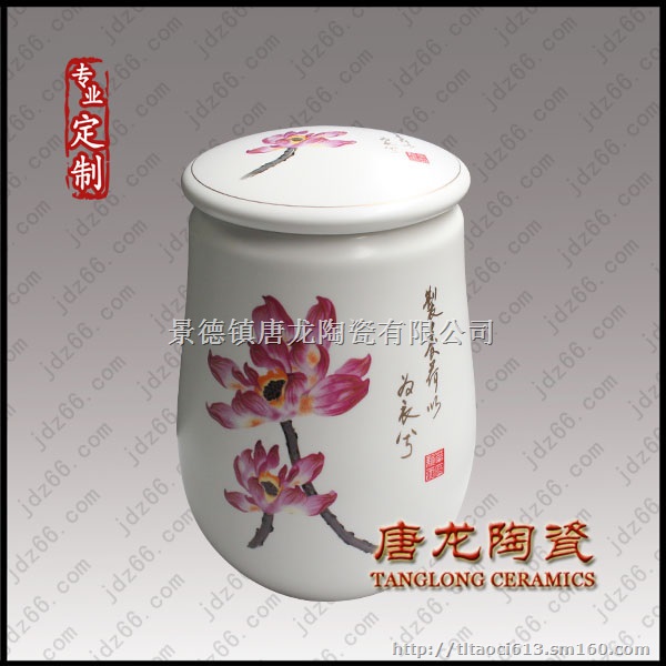 景德镇高温陶瓷茶叶罐有以下优点:1:名茶配名瓷,用享誉世界的景德镇陶瓷作为茶叶的包装,本身就是一种高档次的体现;2:陶瓷茶叶罐的设计和画面可以按照客户要求生产处理,烧制上客户的商标,使得企业形象提升;3: 陶瓷茶叶罐的制作精美,色彩艳丽,和那些低档纸盒、玻璃瓶包装容易形成强烈的对比;4:陶瓷茶叶罐有防潮、防水效果,是其他玻璃、金属食品包装最佳替代品;5:精美的陶瓷茶叶罐容易被接收,保存收藏,储藏食品 景德镇唐龙陶瓷有限公司致力于开发和研制新型产品,此款陶瓷茶叶罐是最新研制和开发的,陶瓷茶叶罐具有良好的市场效应,符合当前市场,陶瓷茶叶罐市场前景良好,小投入大回报。