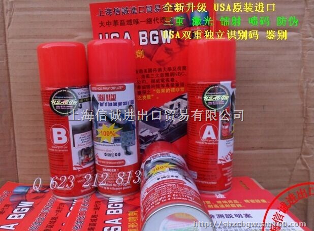 最新升级版喷剂购买时请认准:《美国曝光王镭射商标防伪标记》产品升级标志,NEW 100% 字样镭射防伪喷码等双瓶装可发短信查询真伪;谨防假冒;我公司为大中华区域唯一进口商,--上海信诚进出口贸易有限公司