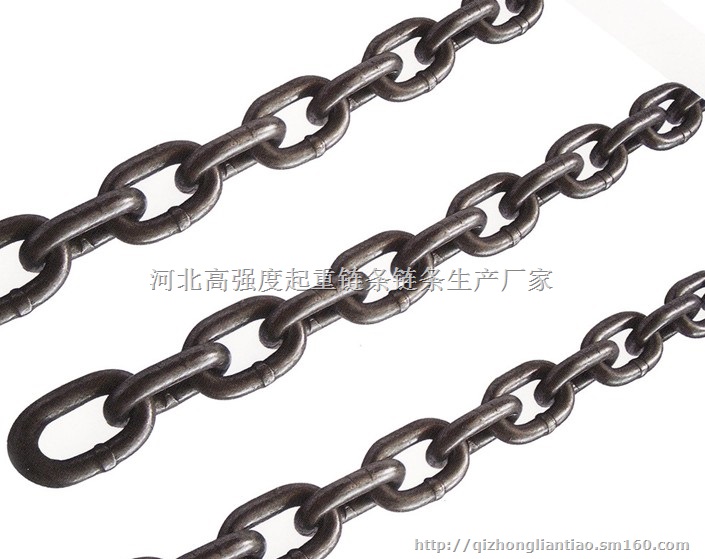 20锰钢起重链条标准规格主要有6mm起重链条,6.3mm发黑链条,7mm镀锌起重链条,8mm煮黑链条,9mm吊车专用链,10*30mm起重短环链,12个起重链条,