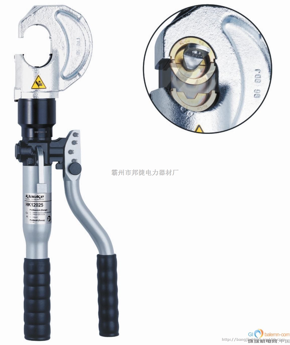 ●C形开口,头部可320度旋转;●全自动双速步进液压系统;;●超强铝合金机体配合防滑手柄;;●手动复位按扭可在需要时令工具复位;●出力:120KN; ●压接能力:Cu 240mm2;●长度:510mm ●重量:5.4kg ●配件:铁箱1个
