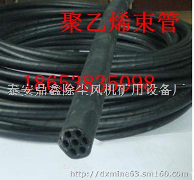 煤矿用聚乙烯束管——由聚乙烯塑料粒子能过挤出加工而成为塑料单管管,若干根塑料管组合一起,经玻璃纤维衬填缠绕,在外层挤包聚乙烯塑料护套