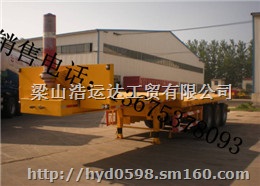 出口集装箱骨架半挂车,集装箱骨架半挂车价格,集装箱骨架半挂车厂家,集装箱骨架运输车是集装箱运输半挂车车架的一种还有一种是平板式。骨架式车驾由纵梁、横梁和前、后端梁焊接而成,纵梁采用优质钢板16Mn埋弧焊接成工字形(主要尺寸有450、500),横梁采用优质钢板冲压成槽型,前后端梁为焊接式矩形截面。中间集装箱锁紧装置部位设置了整体式长横梁,以提高集装箱锁紧装置的承载能力。平板式与骨架式的区别在于平板式增设了边框和花纹地板。木系列集装箱运输半挂车的车架全部喷丸处理,整个车架是在专用的定位台架上组装、焊接而成,其结构合理、强度高、外形美观。在车架上设置了集装箱紧缩装置,可以装载40英尺、20英尺两种标准集装箱。前后端的四个集装箱紧缩装置为固定式结构,中间集装箱紧缩装置为可藏式结构。装载集装箱时,根据需要可将中间集装箱锁紧装置降低到货台平面以下。选用机械式承载装置,主要有宝华12T、20T;富华13T;JOST;等类型。其作用是当牵引装置与挂车脱开时,用于支撑地面,承受半挂车前部载荷。支承装置有单动式和联动式两种,主要由支承盘、螺杆传动机构、减速箱和操纵手柄等构成。悬挂装置有单轴式悬挂和双轴式悬挂三轴式悬挂三种装置半挂车配备两付备胎架,分别安装在挂车车架左、右两侧,并备有备胎升降器。本公司生产和出口各种骨架式集装箱半挂车,国内知名品牌,质量保证!欢迎各地新老用户来人来电 ,欢迎前来洽谈.欢迎各地新老用户来人来电 ,欢迎前来洽谈.