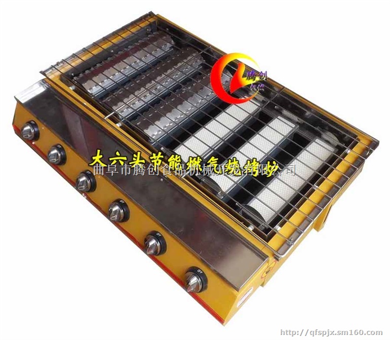大四头无烟燃气烧烤炉,大六头节能燃气烧烤炉,该款机器采用液化气为能源,方便户外经营生产,整体采用优质耐高温彩色喷涂,用料足、做工精细、美观大方,烤制食物干净又卫生,是做烧烤生意的最佳好帮手。本款烧烤炉名副其实,机器的整体宽度加大,光烧烤范围的宽度就达到了 40cm,可同时烤制各种食物,而且设有可升降式的不锈钢烤网,烤网高度随意调节,烤制不同的食物都能得心应手,方便烤制不同的肉食、蔬菜类等,让食物达到烧烤的最佳状态,市面上的烧烤炉多是采用此种!