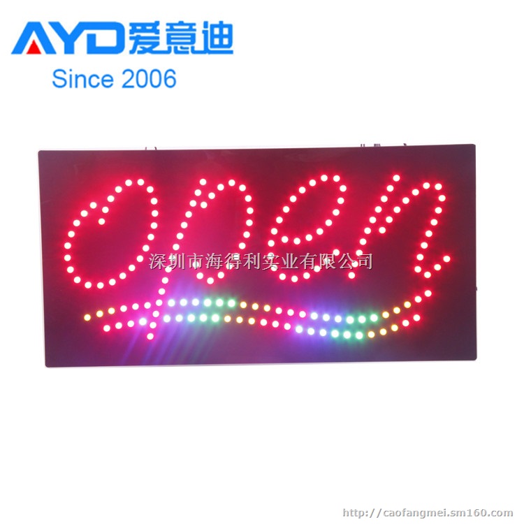 LED招牌,又称(LED变色招牌,LED灯箱,LED发光字,LED店面招牌,LED动感招牌,LED广告招牌,LED SIGN,LED OPEN SIGN)。LED招牌是我厂利用新型超高亮LED(发光二极管)结合CPU中央编程控制器开发的一种实用型灯箱,比传统霓虹灯具有省电节能(功率为6-12W)、安全、亮度高(比普通灯提高5-6倍)、寿命长(5W-10W小时)、性能稳定等优点,属于典型的“绿色”灯箱,市场前景极好,适合于所有中高档餐厅、咖啡厅、西餐厅、酒吧、茶座、KTV、蛋糕店、冰淇淋店、足浴按摩、美容美发美体、健身娱乐、夜总会、俱乐部、保龄球馆、旅馆酒店、连锁超市、商场、中高档社区入口处及前台、网吧、旅行社门口、旅游景点门口等。在家庭装饰、公共场所、演唱会、球赛、展览展示、超市电子城内、商家店面广告都会有十分广泛的应用。产品质地优良品味尊贵、绿色环保、造型美观、抓眼球效果明显,是商友们的广告最佳选择!