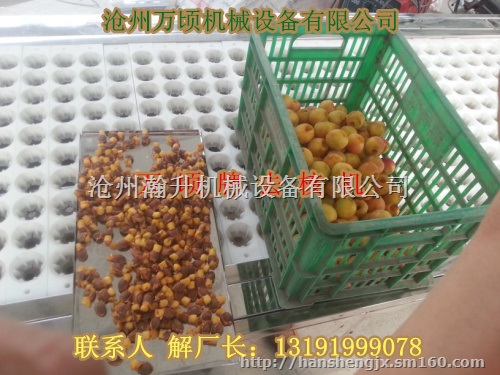 万顷牌全自动高精度杏去核机的冲刺物为经过特殊处理的高硬度材料,以极高的速度冲刺果核达到去核目的。果实去除内核后,仍保持皮和肉整体完整,只在果实中心有一顺着核的长端方向的孔。