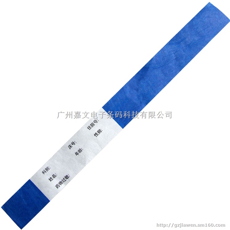 广州嘉文给大家介绍下杜邦纸腕带这款产品,这款产品是环保、不掉色、易书写型的手腕带。它会让你在使用过程中不会产生以上问题。另外最重要的一点便是热敏成型的问题。平常的打印型手腕带是需要用到碳带打印的,这样病人的信息可能会从碳带这一块泄露出去。手写型腕带就不会出现这个问题,因为在使用它的整个过程中没有碳带的参与,所以杜邦纸腕带不仅是绿色环保产品,还是安全保密的好腕带。