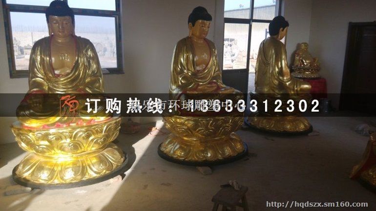 三宝佛采用玻璃钢制作而成,加上莲花底座三宝佛总共高2米。如果需要更多三宝佛信息欢迎联系我们。