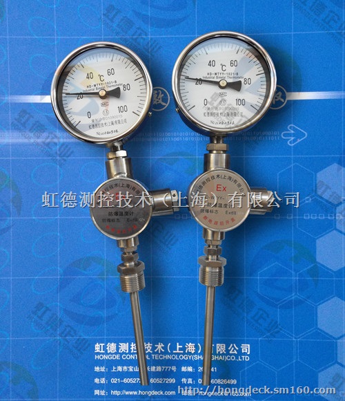 HD-WTYY-1021,WTYY-1031,WTYY-1020,WTYY-1035虹德测控液体压力式温度计克服了传统膨胀式温度计性能单一、寿命短、可靠性差、温包体积大的缺点。其中测温元件体积分别比传统的蒸汽和气体压力式温度计缩小了30和60倍,创造性地将铂或铜热电阻测温元件安装于测温元件内,实现了机电一体化的测温功能。形成了以液体压力式温度极为基本测温仪表的远传、防爆、防震、防腐、电接头、温度信号变送等多功能、系列化温度仪表。
