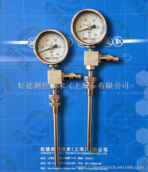 HD-WTYY-1021,WTYY-1031,WTYY-1020,WTYY-1035虹德测控液体压力式温度计克服了传统膨胀式温度计性能单一、寿命短、可靠性差、温包体积大的缺点。其中测温元件体积分别比传统的蒸汽和气体压力式温度计缩小了30和60倍,创造性地将铂或铜热电阻测温元件安装于测温元件内,实现了机电一体化的测温功能。形成了以液体压力式温度极为基本测温仪表的远传、防爆、防震、防腐、电接头、温度信号变送等多功能、系列化温度仪表。