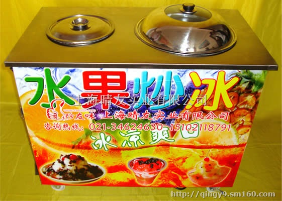 我厂生产炒冰机采用进口名牌大功率压缩机,制冰速度是普通炒冰机的2倍。外壳配以动感画面,使整机显的无比豪华、炫目。我厂生产的炒冰机款式新,型号多,产冰量大,是广大消费者的理想选择;目前我厂设计出的全自动炒冰机,更是炒冰机引领行业中的首位,全自动炒冰机采用微电脑控制,全封闭设计,使你操作起来更轻松。我厂生产的各规格的炒冰机都可配置防尘罩、充霜比普通炒冰机更豪华、更干净、更悦目。使用我厂生产炒冰机可以炒不同档次的饮料,炒出来的冷食味圆爽口,而且成本低,利润高,操作方便简单,只要将调好的饮料倒入锅内,不到几分钟就可以炒出你想吃的食品。
