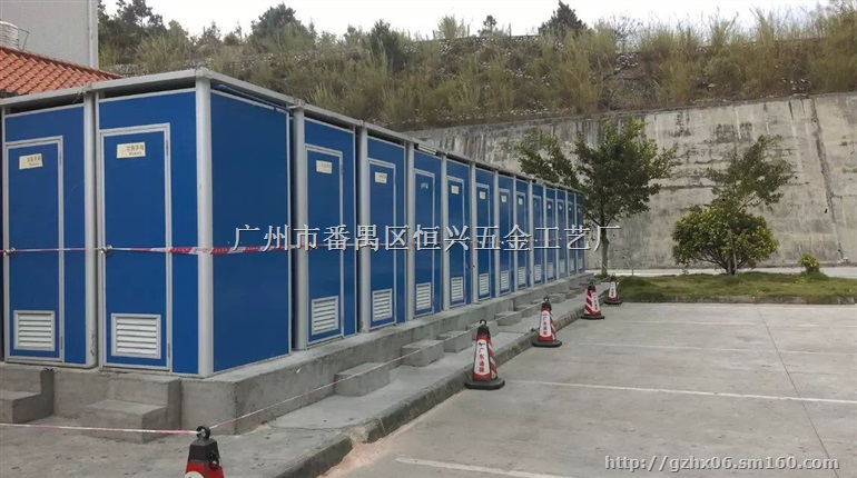 流动厕所是以彩色强化彩钢板为主体结构,达到坚固耐用、美观大方、并且不生锈、不腐蚀、墙板二面光滑、易保洁、符合卫生要求、重量轻以及可随意设置移动到们等特点。流动厕所主要由底座、墙板、屋盖、门板和便器五大部分组成。底座内腔高有储便槽,并在背面出粪口。内部设施简洁实用,设有一个蹲式便器,由水阀冲洗便器,便槽底部空间供储存粪便,储存容量为150升,使用人次380人次以上,
